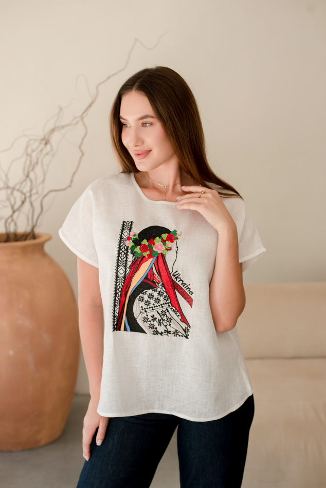 Блузка жіноча "Українка", Білий льон арт.4684