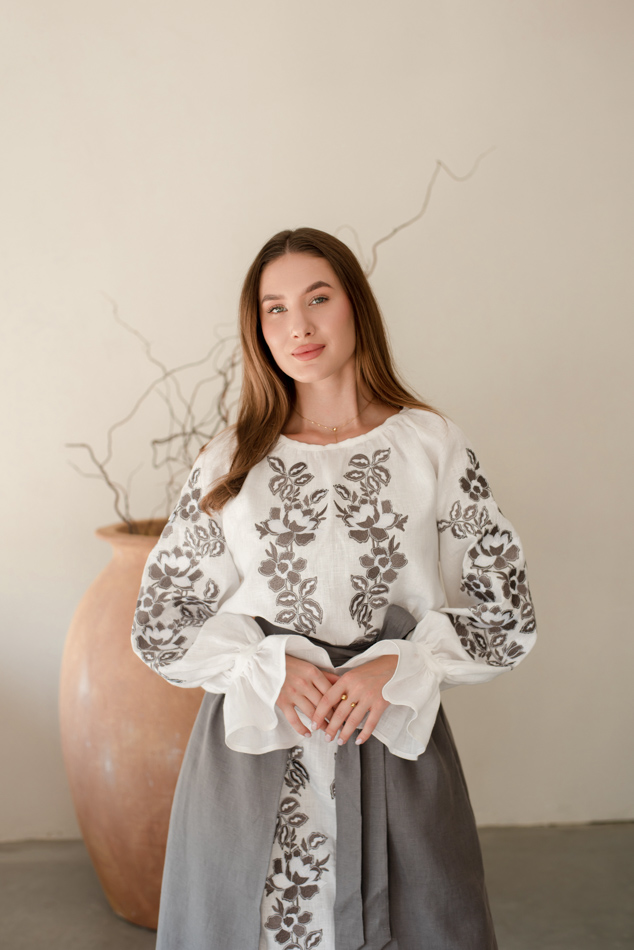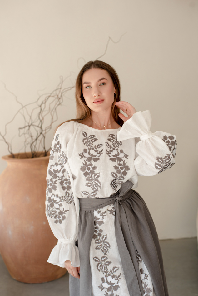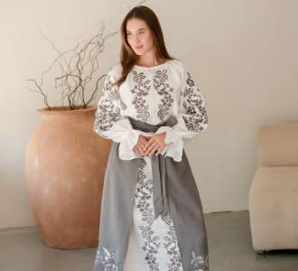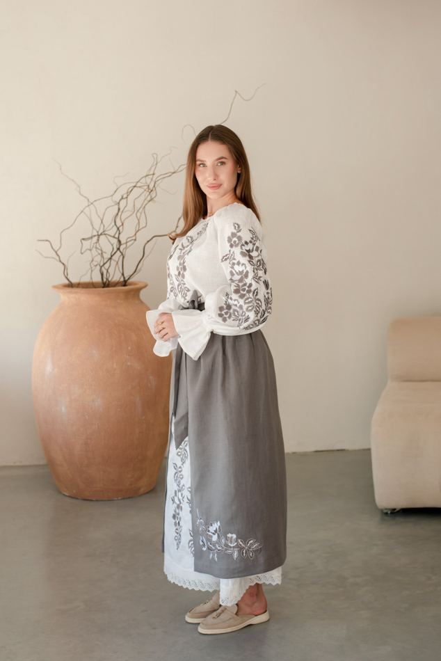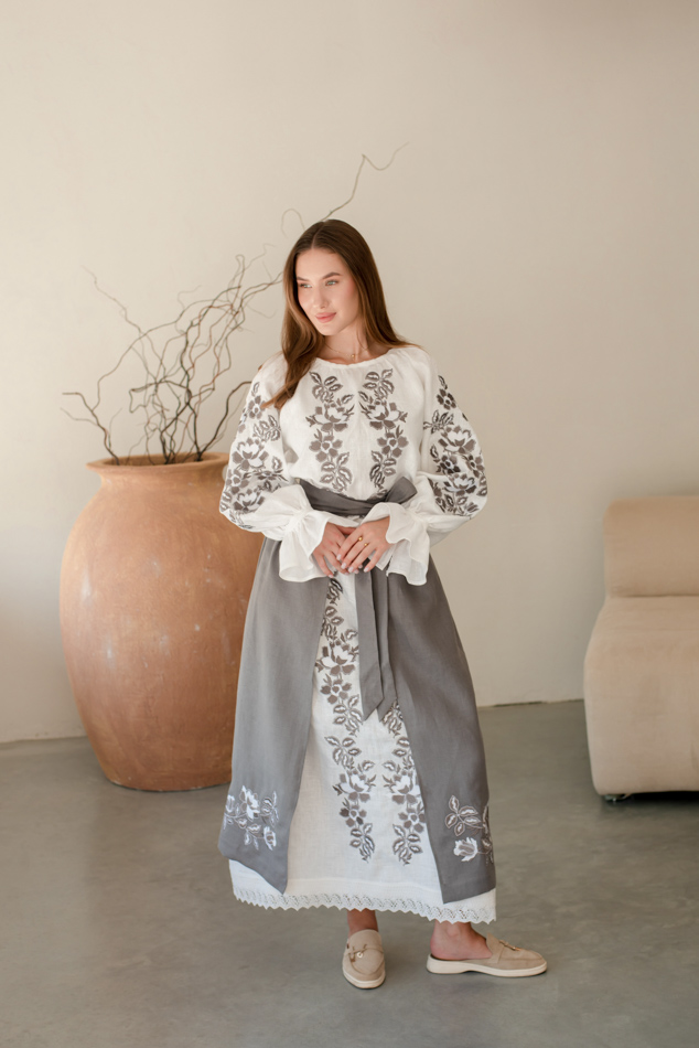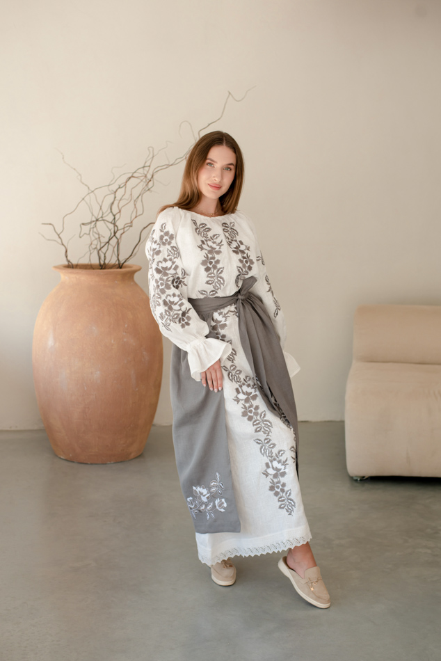 - Вишита лляна сукня "Княжа" — довга, жіночна, зручна як самостійний образ.