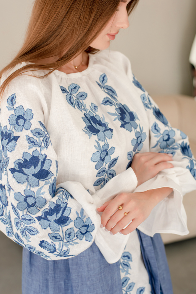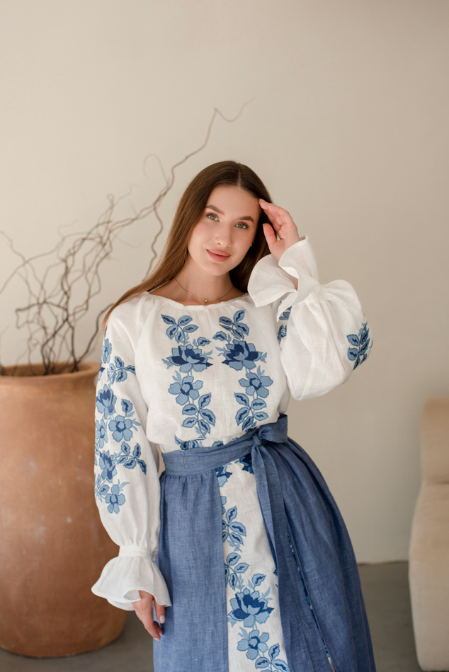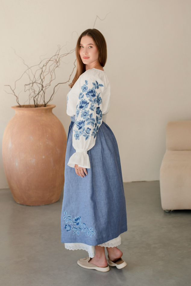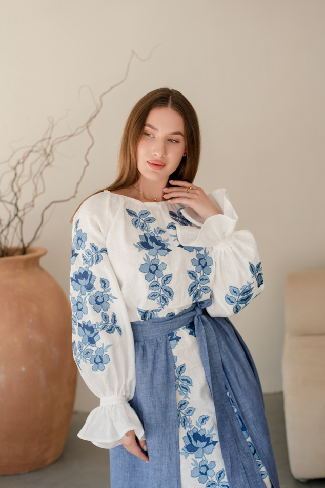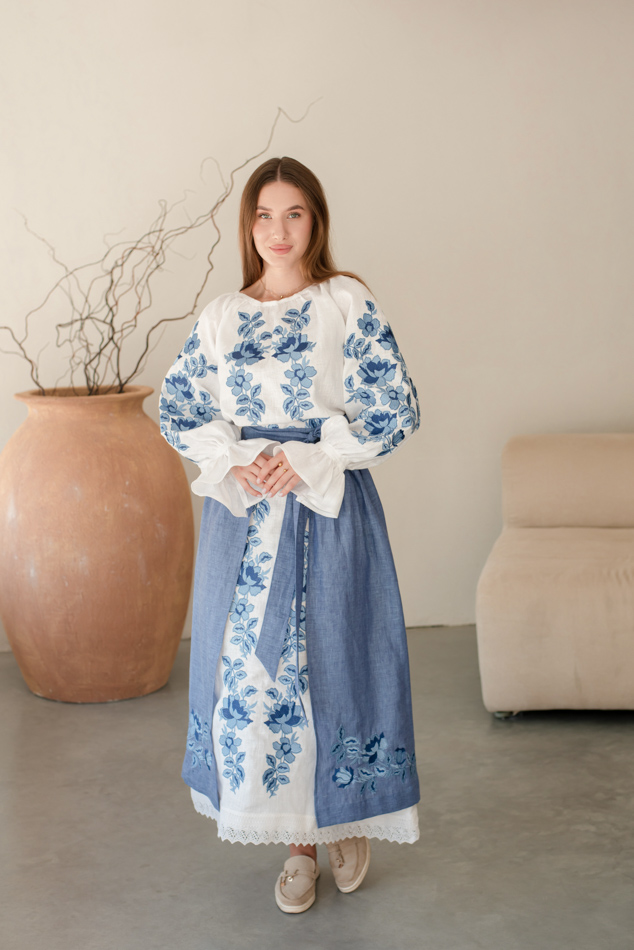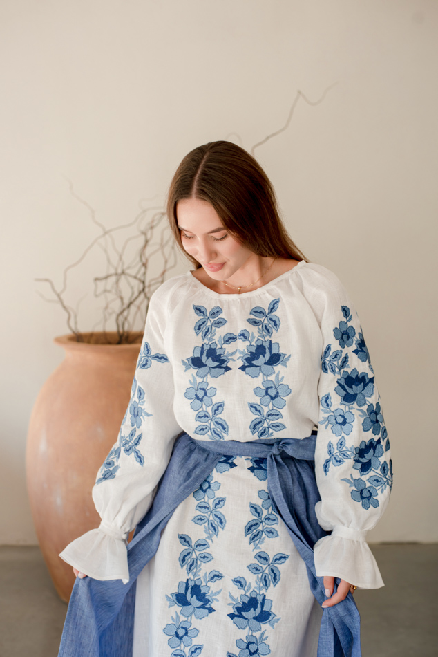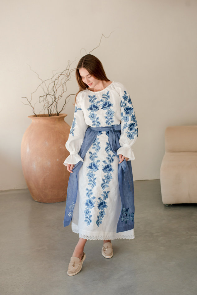 - Вишита лляна сукня "Княжа" — довга, жіночна, зручна як самостійний образ.