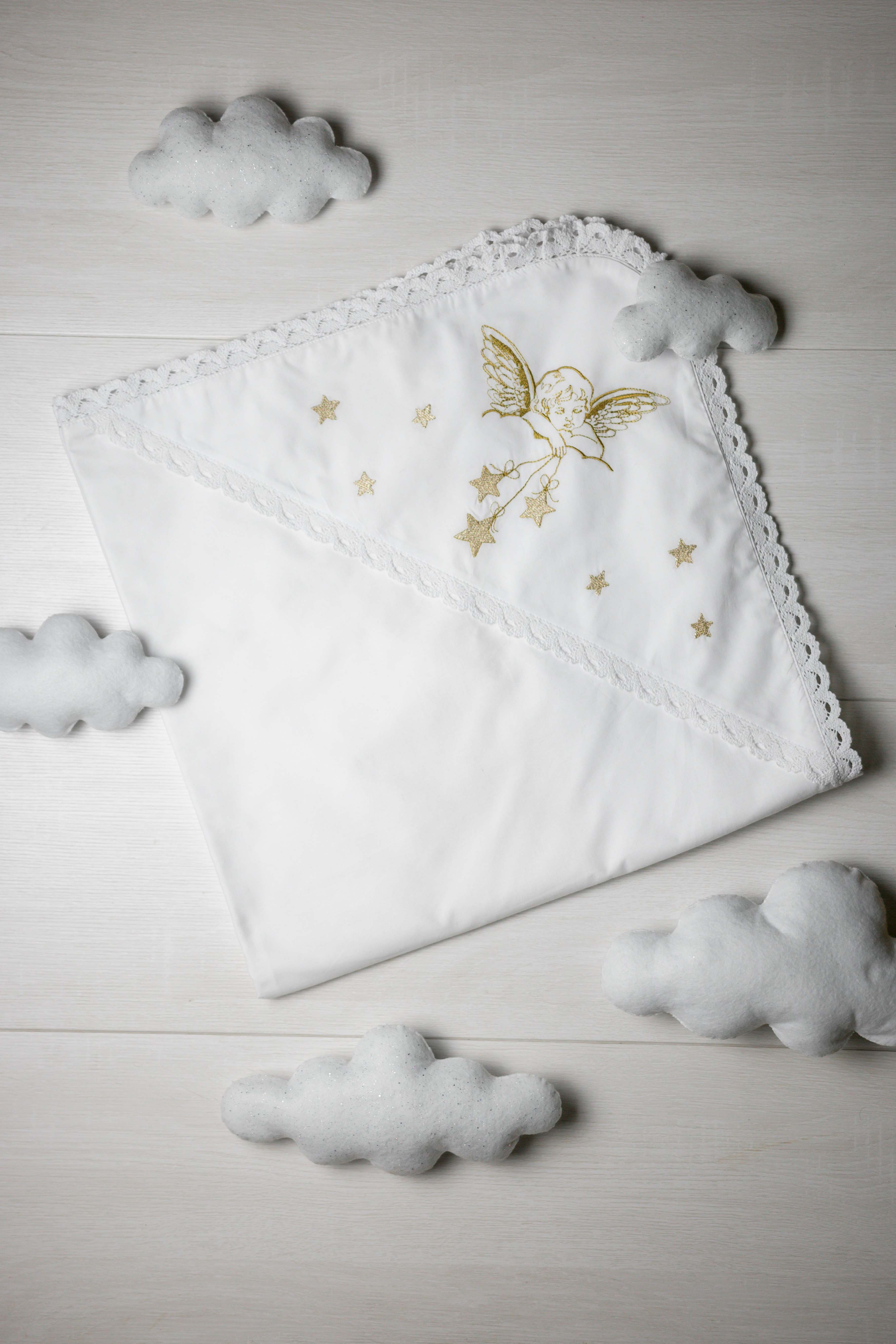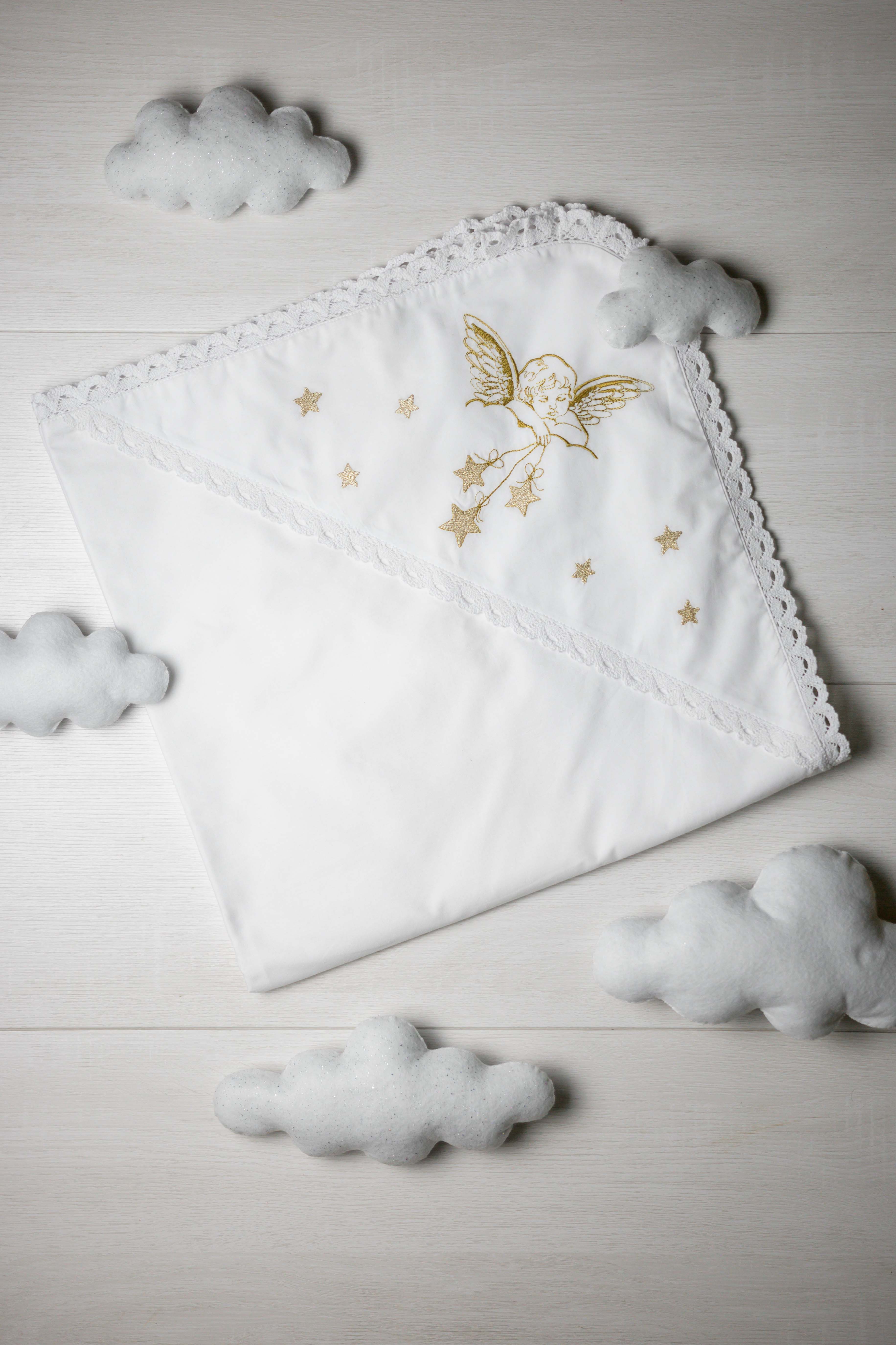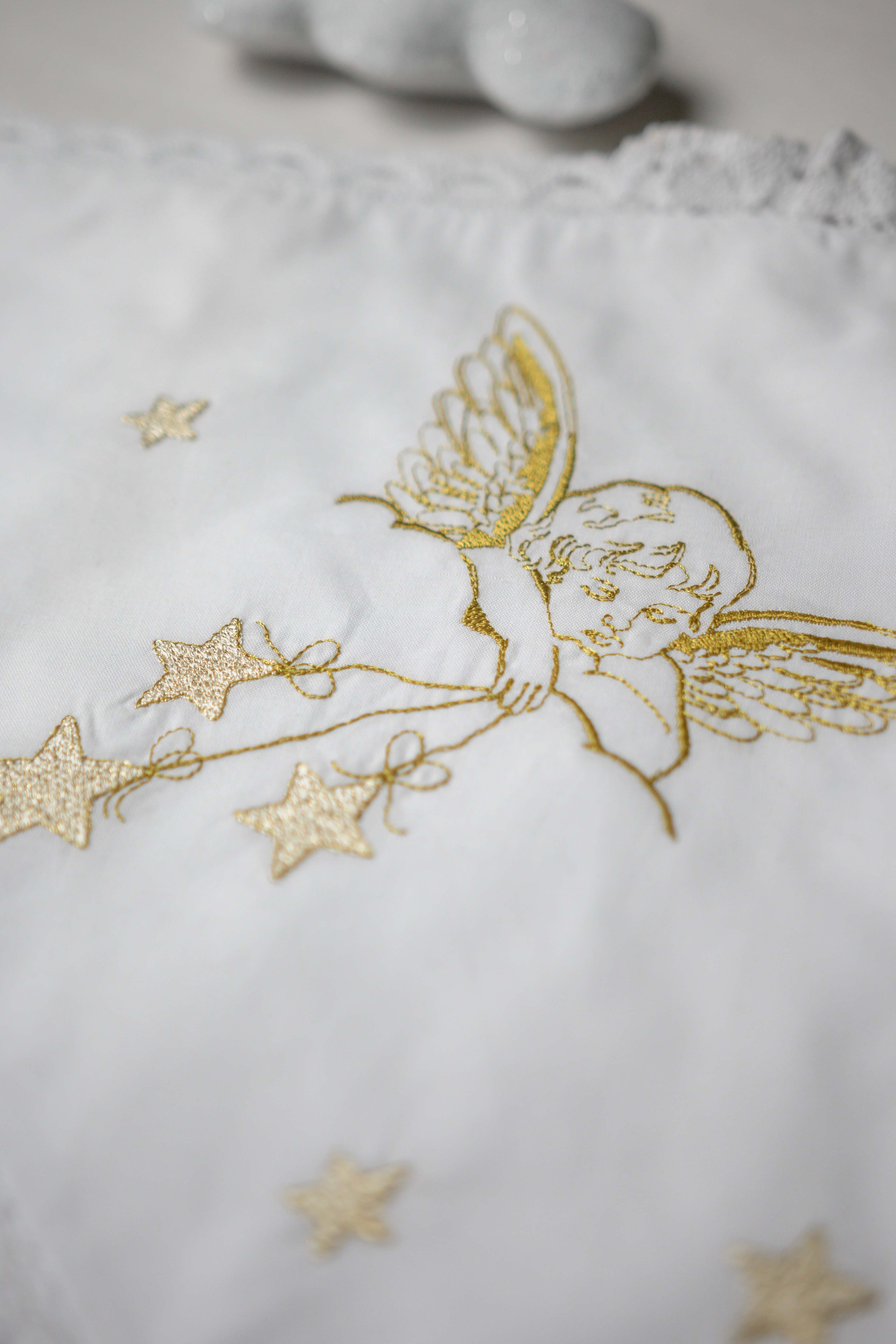 Крижма "Ангел зірки" темне золото, з плюшем, бавовняне мереживо, арт.7071