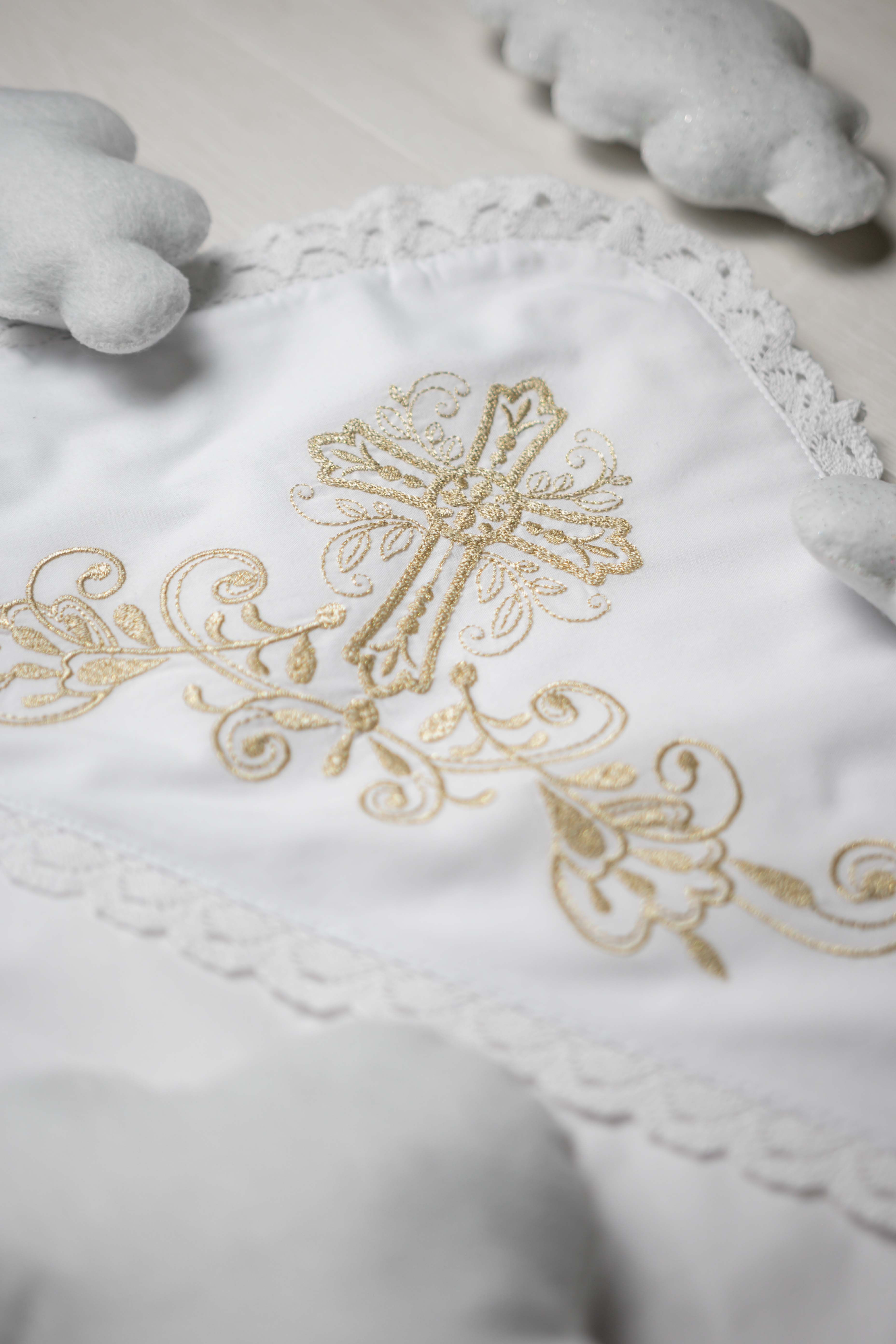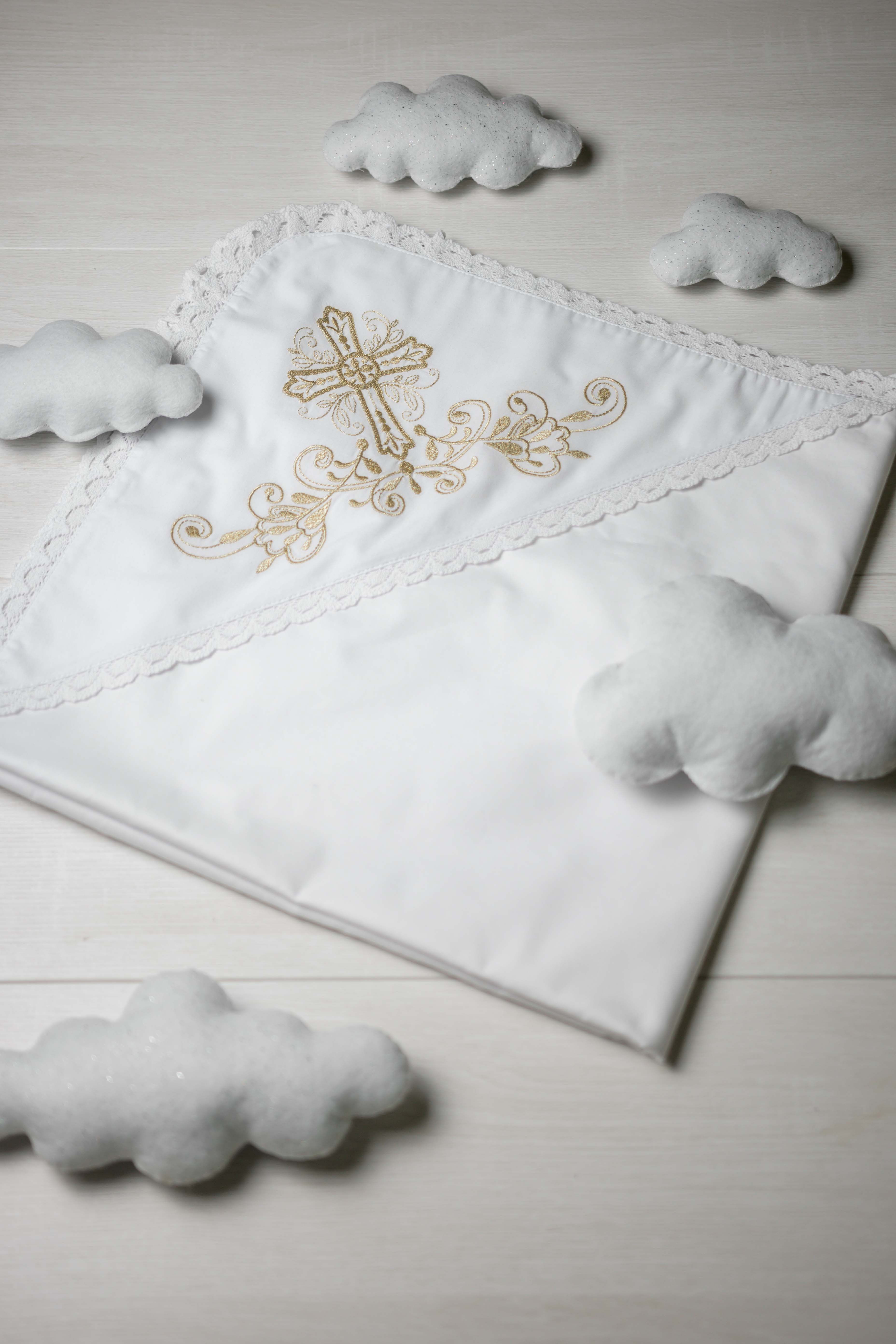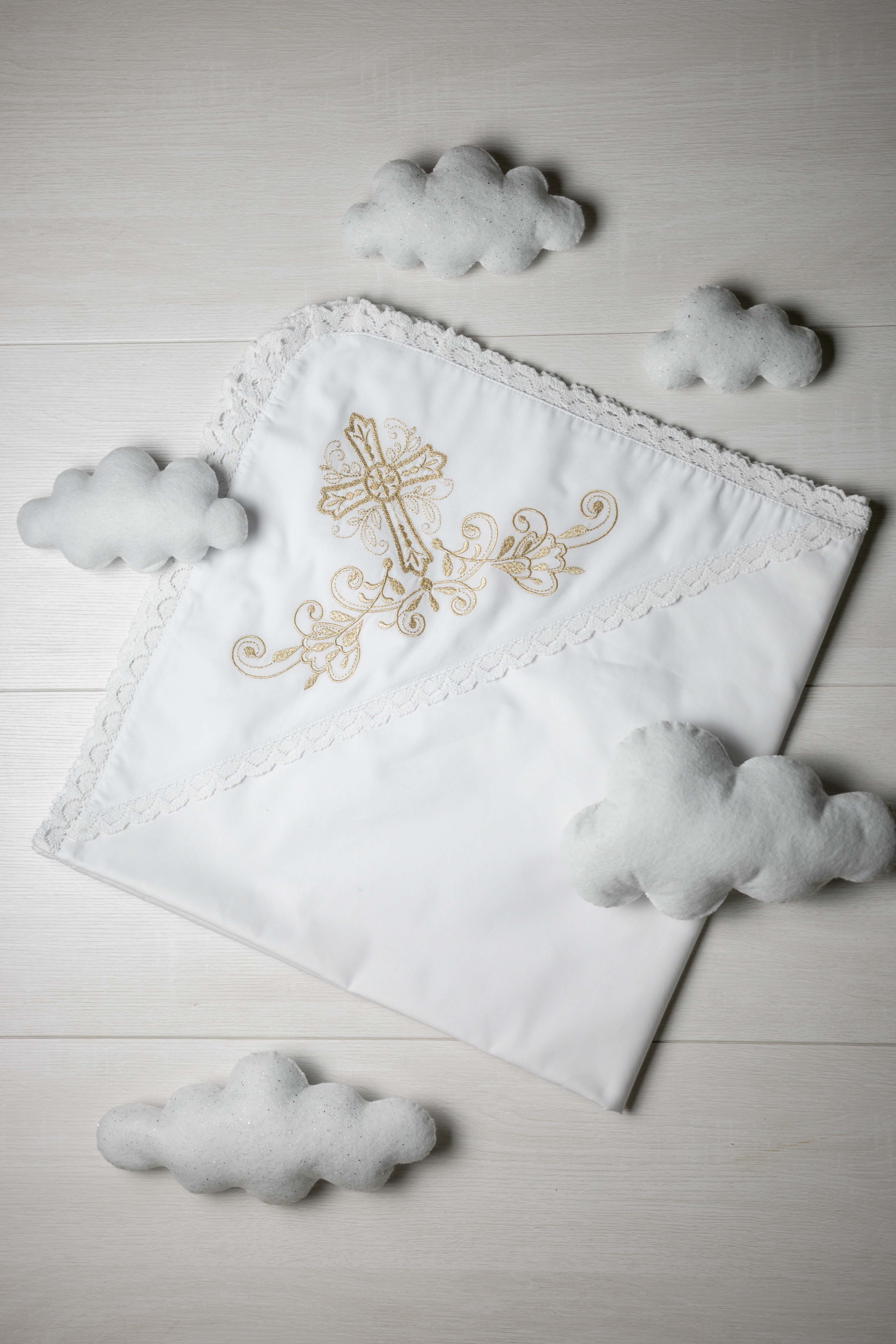 Крижма "Хрест гладь" золото, з плюшем, бавовняне мереживо, арт.7051
