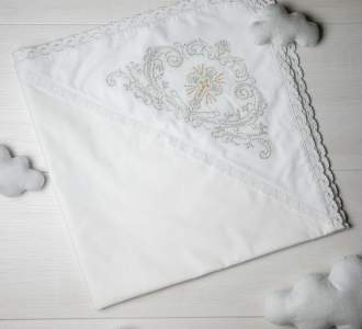 Ніжна та практична крижма для малюка. Внутрішня сторона виготовлена з бавовни — дихає, приємна до тіла та безпечна для шкіри. Зовнішня сторона — м’який плюш, який дарує тепло й комфорт. Машинна вишивка додає охайного та стильного вигляду.
