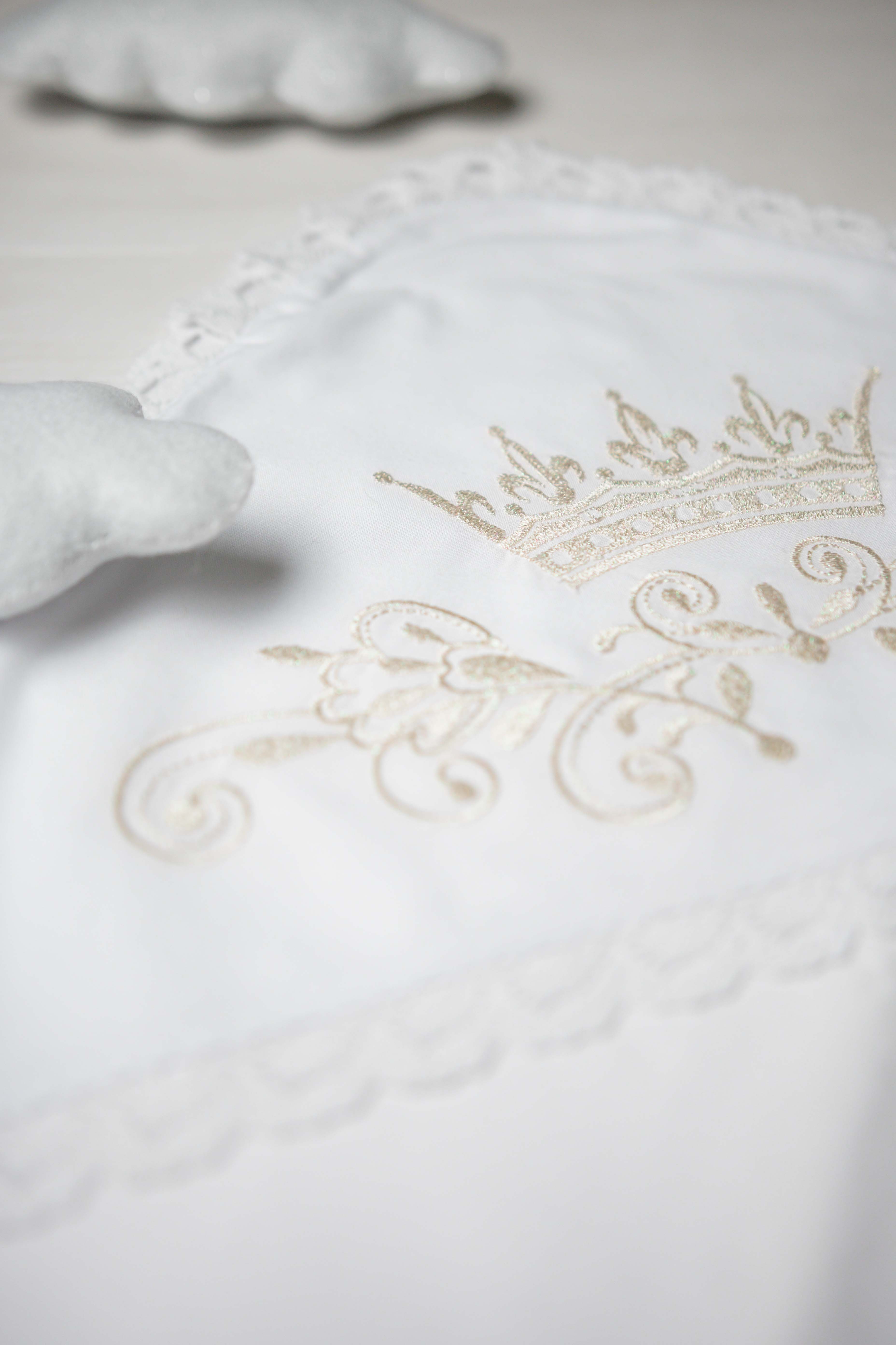 Крижма "Корона гладь" молочна, з плюшем, бавовняне мереживо, арт.7053