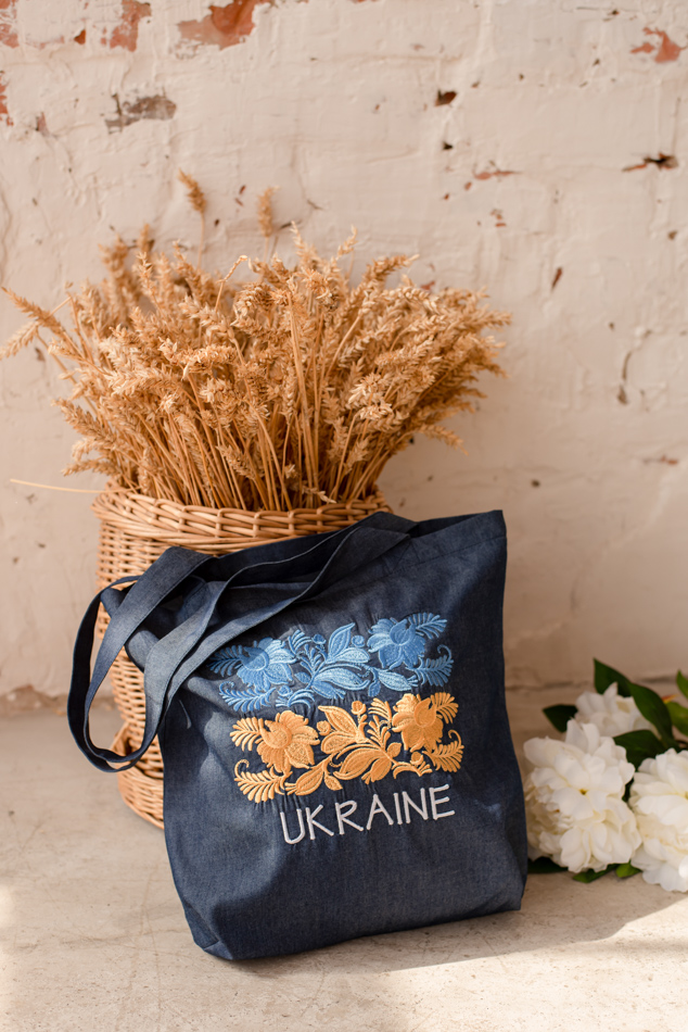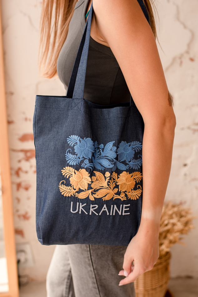 Шопер «Ukraine» (джинсовий з вишивкою),арт 7113