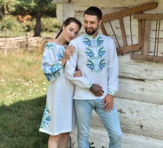 Пропонуємо вашій увазі парні вишиванки: жіноча і чоловіча сорочки з подібним орнаментом, виготовлені з однакової лляної тканини білого кольору, такого ж плану дитячі вишиванки